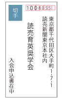 添付された奨學(xué)會(huì)入會(huì)申込書に、もれなくご記入?捺印いただき、読売育英奨學(xué)會(huì)まで送付してください。既卒の方は履歴書を同封してください。封筒には切手を貼り、必ず表面に「入會(huì)申込書在中」、裏面には「申込者の住所?氏名」のご記入をお願(yuàn)いします。