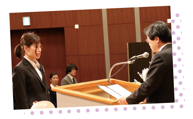 奨學(xué)會(huì)卒業(yè)生が一堂に會(huì)して卒業(yè)式を執(zhí)り行います。